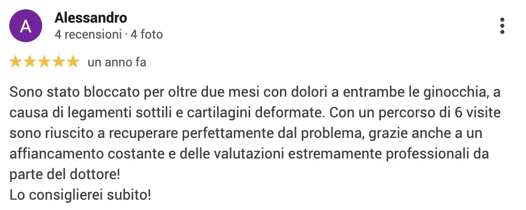 Utilizza terapia sia manuale che strumentale con macchinari all'avanguardia come laser YAG (laser ad alta potenza), tecar-terapia, onde d’urto, TENS